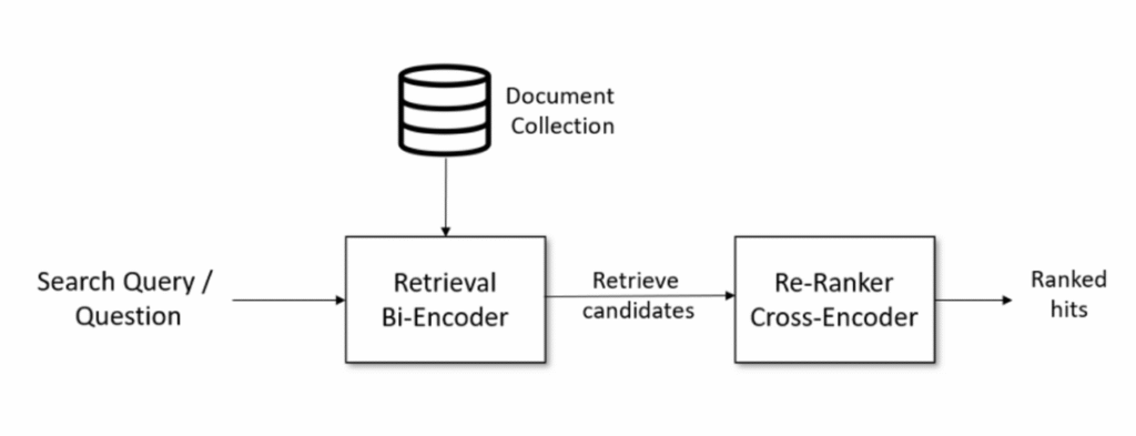 该方法的步骤是,首先检索出 topN 个知识块(N > K,过召回),然后再对这 topN 个知识块进行重排序,取重排序后的 K 个知识块当作上下文。重排是利用另一个排序模型或排序策略,对知识块和问题之间进行关系计算与排序。