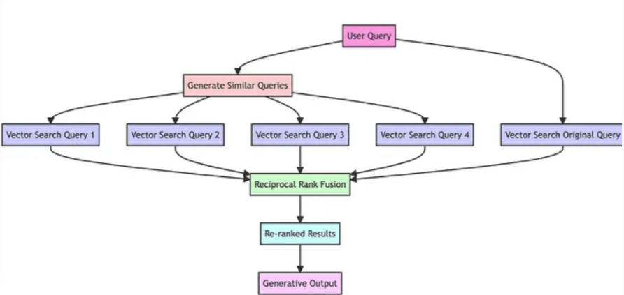 - 对原始查询及其生成的类似查询进行向量搜索,实现多个查询生成。