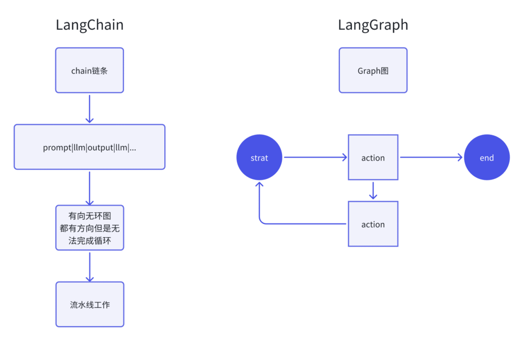 - LangGraph是图状(Graph)结构,支持任意的节点连接